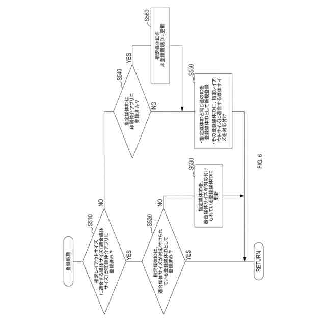 前記登録処理は、前記第1IDと同じ値の前記第2IDが前記登録済サイズとして登録されていない場合、前記第1IDと同じ値の前記第2IDを、前記第1IDに対応した前記媒体サイズを対応付けて、前記登録済サイズとして新規に登録する、