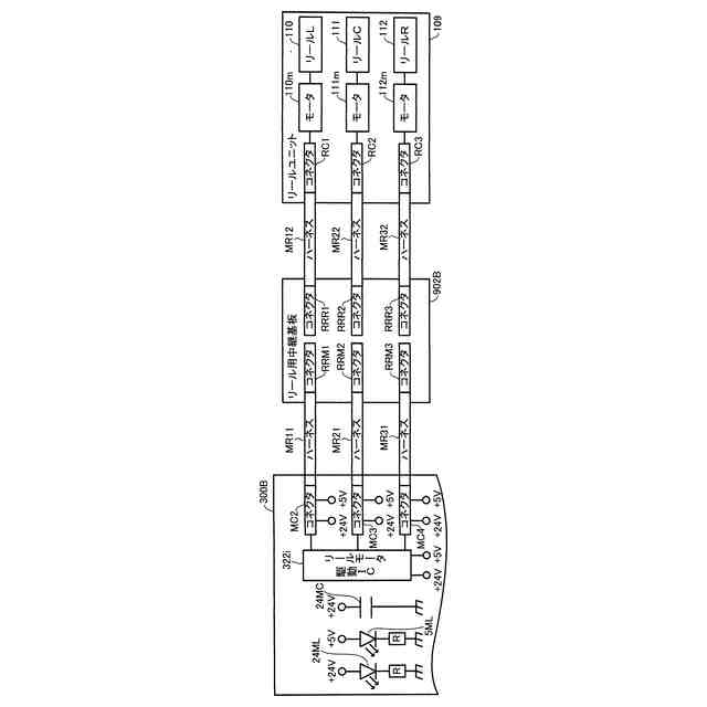 図3に示す主制御基板300Bと、同じく図3に示すリールユニット109との間に中継基板が設けられた例を示す図である。