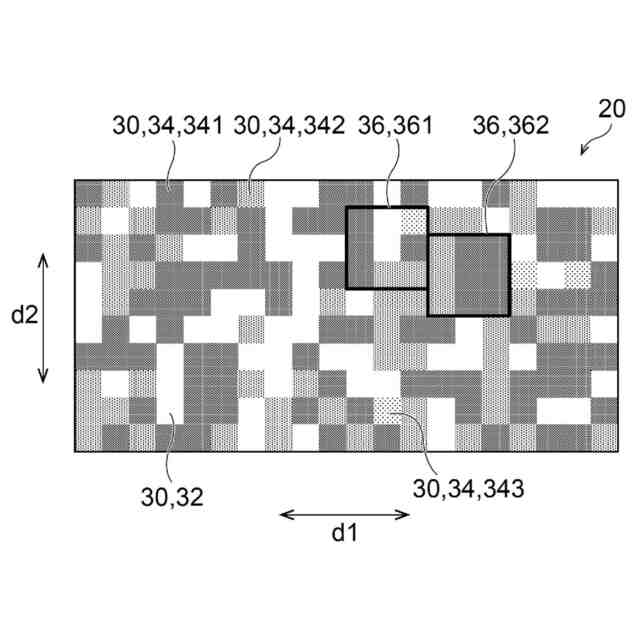 前記第1要素領域は、規則性を有しないパターンで配置されており、