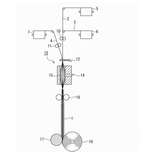 図3は本発明の一実施形態における詰め物用糸(エアー交絡糸)の製造方法の模式的説明図である。