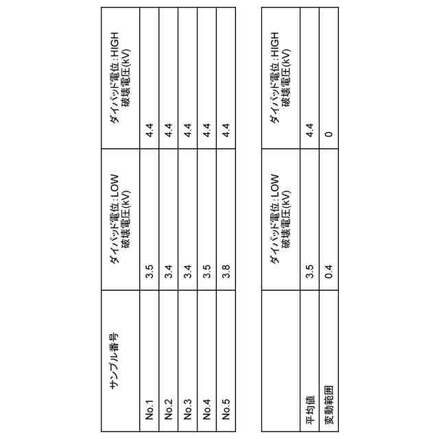 図9は、サンプル素子で得られた破壊電圧(kV)を示す図表である。