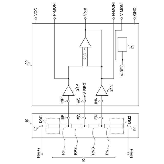 図6は、抵抗チップに形成された分圧回路の電気的接続関係を説明するための平面構成を示す図である。