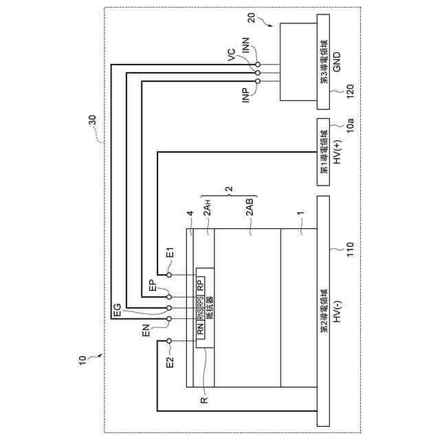 前記抵抗領域の前記第1箇所と前記第2箇所の間の箇所に電気的に接続された基準電極を更に備える、