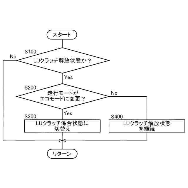 図1に示す電子制御装置の、自動運転走行中に走行モードが変更された場合のロックアップクラッチの断接制御の制御作動を説明するフローチャートの一例である。