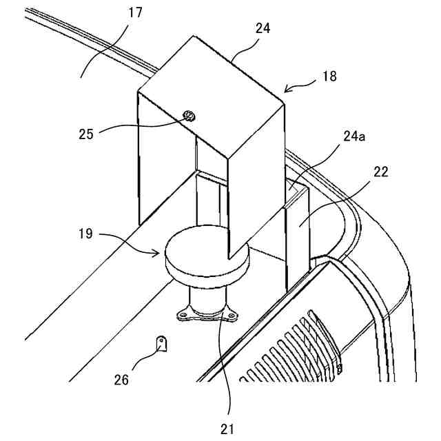 前記アンテナカバーの上面は、樹脂材料、または、開口によって形成された特定領域部を有する、