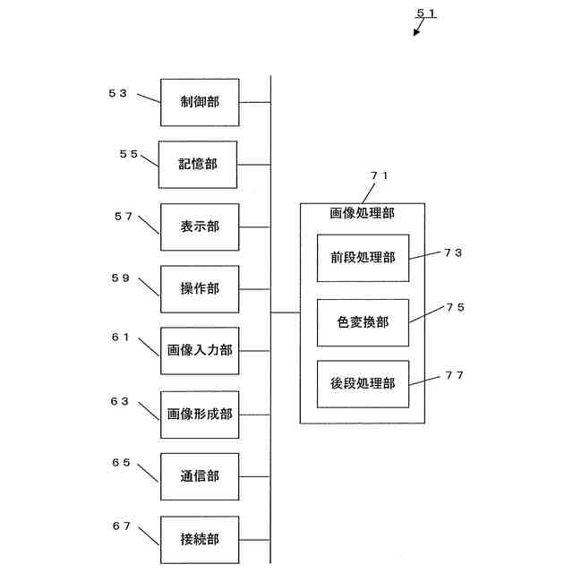 本開示に関連して、特許文献1には、色材信号より墨版生成及び下色除去の処理を行う下色除去手段1、平滑処理及びエッジ強調を行う空間フィルタ2、色材信号xに対して係数a、bを用いax+bの演算を行う演算回路3、及び濃度調整やコントラスト調整、ネガポジ反転、カラーバランス調整等を行う色調補正制御手段4を備え、原稿タイプや領域識別の結果に応じて係数a、bを設定するように構成し、演算回路3は、複数の係数a、bを持ち、切り換えるように構成した画像処理装置が開示されている。