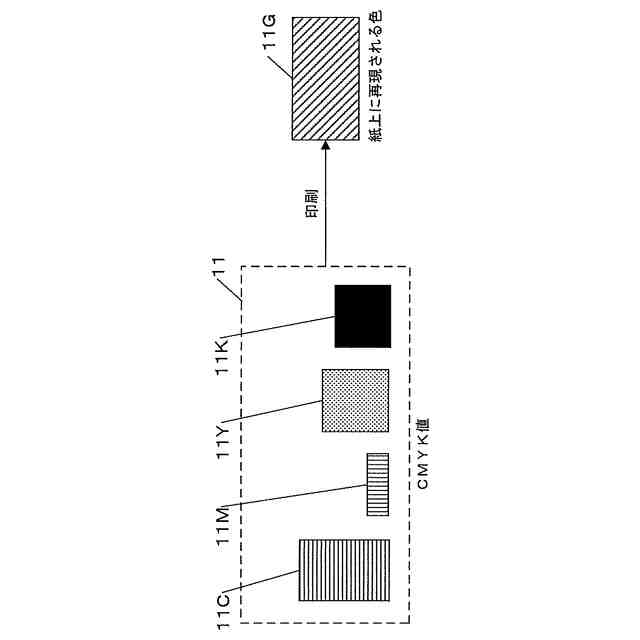 一般に、MFP(Multi-Function Printer/Peripheral)、カラープリンタ等の画像形成装置では、入力画像データが示す画像を紙等の媒体上に形成する際に、第1の色値(例えばRGB値)を含む入力画像データを、黒及び第2の色値(例えばCMYK値)からなる出力画像データに変換する画像処理が行われる。画像形成装置は出力画像データに基づいて媒体上に画像を形成する。