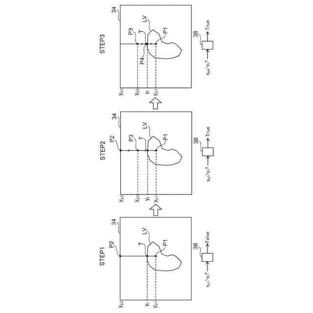 前記第2の予測処理及び前記第2の移動処理を所定の回数繰り返し行う際に、直前の前記第2の移動処理における前記2つの点のうちの何れかの点と前記暫定特徴点との間に前記新たな暫定特徴点を設定する