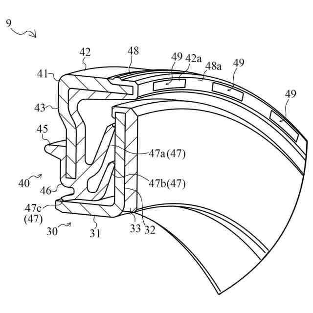 ここで、密封装置においては、異物の浸入を防止するにあたって、外方部材と内方部材との間の軸受空間にスリンガ及びシールリングを適切な位置に配置することを要する。スリンガとシールリングとの相対的位置が軸方向に離れるようにズレることによって、リップのスリンガに対する接触幅や押圧力等が小さくなり、異物の浸入を防止することが困難となる場合がある。また、スリンガとシールリングとの相対的位置が軸方向に近づくようにズレることによって、リップのスリンガに対する押圧力等が大きくなって、トルクが増大する場合がある。