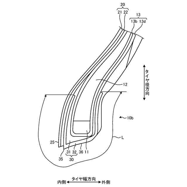 図10Bは、本開示のタイヤの性能試験の結果を示す図表である。