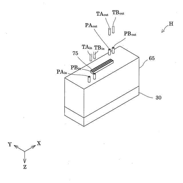 【解決手段】第1ノズル群と、前記第1ノズル群に連通する第1共通液室部とを含む第1ヘッドチップ44と、第2ノズル群と、前記第2ノズル群と連通する第2共通液室部とを含む第2ヘッドチップ44と、第1方向に積層された複数の流路基板を含む流路構造体60であって、前記第1共通液室部および前記第2共通液室部に連通するとともに前記第1方向に直交する第2方向に延在する第1共通部分Sa2を有する第1流路Saと、前記第1共通部分の一部を画定する第1可撓性部材113と、を有する流路構造体60と、を備える。