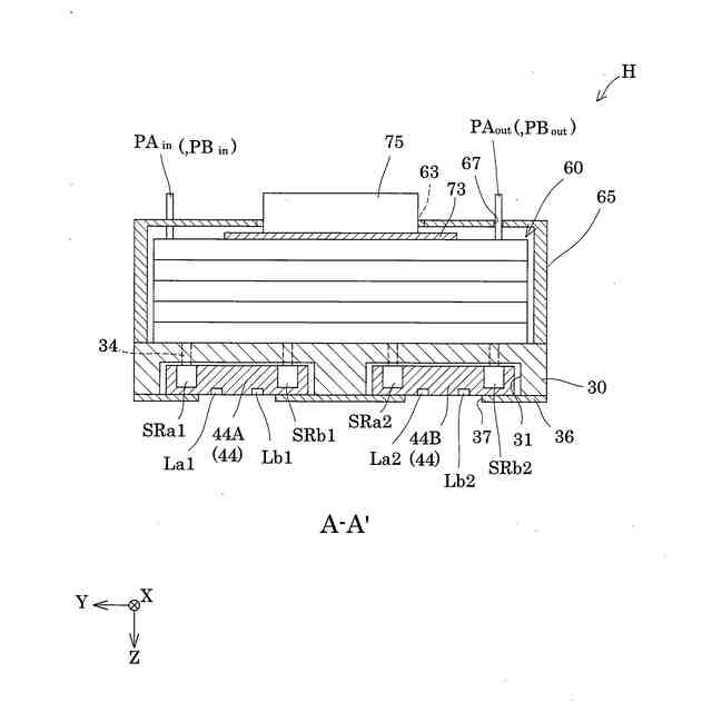 前記第1流路基板と前記第2流路基板との間に配置され、前記第1可撓性部材および前記第2可撓性部材とともに前記第1コンプライアンス空間を画定する第3流路基板と、を含む、