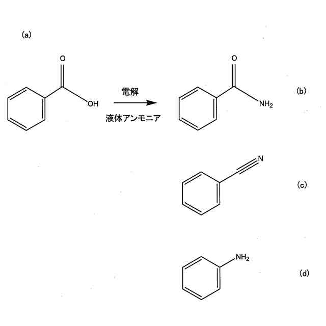 請求項1に係る本発明では、対象物(例えば、有機物)を、アンモニアを主成分とする溶媒(液体アンモニア)の中で電解することで、アンモニアを窒素源として対象物から窒素含有化合物を得ることができる。つまり、アンモニアを有効に利用し、窒素源として毒性の高い物質(CuCN、NaCN)を使用することなく、常温で、アミン、イミン、ニトリル、アミド、イミドなどの窒素含有化合物を直接的に得ることができる。
