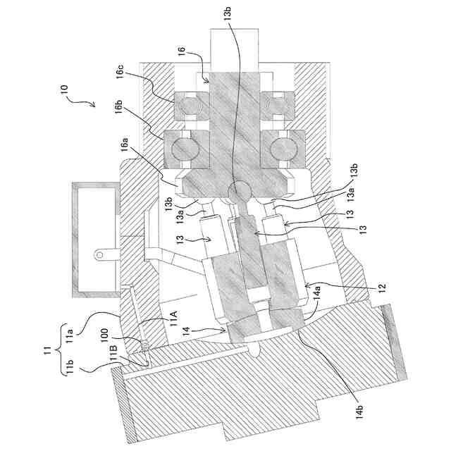 前記回転軸に対する前記センタシャフトの傾斜角を変化させ、前記ピストンのストローク量を変化させるサーボピストンと、