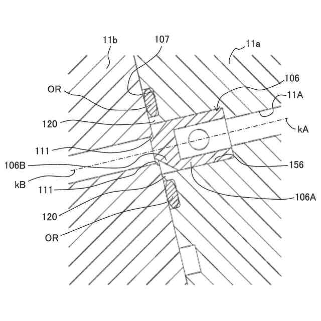 前記第1油圧部品又は前記第2油圧部品における、前記第1軸心または第2軸心を基準として前記第1穴及び前記第2穴の対向部より径方向外側に設けられた、略環状の第1溝と、