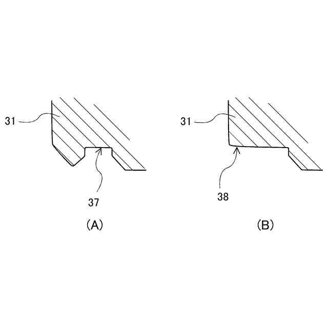 図5に示す破線部分について、プレート本体における逃がし部が無いアンダーカット部の拡大断面図(同図(A))、及び、プレート本体における逃がし部の拡大断面図(同図(B))である。