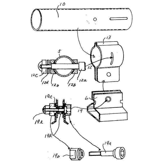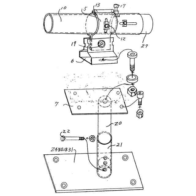 前記上部支持具を前記下部支持具に対して上下方向に回動可能であり、また前記柄取付け固定具を前記上部支持具に締結出来る上下回動支点軸セットと、