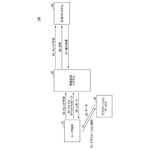 レポート作成システム100において、情報処理システム20とユーザ端末10、及び、情報処理システム20と開発者端末60は、ネットワークN1、N2を介して通信可能に接続されている。また、情報処理システム20は、ネットワークN1を介して生成AIシステム50と通信できる。さらに、ユーザ端末10及び開発者端末60は、ネットワークN1、N2を介して生成AI(Artificial Intelligence)システム50及び外部システムであるアプリケーションサービス40と通信できる。なお、情報処理システム20は、ネットワークN1を介したアプリケーションサービス40と通信してもよい。