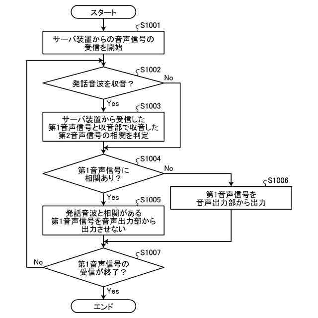 前記第1音声信号と前記第2音声信号の相関値が所定の閾値以上である場合、前記第1音声信号を前記音声出力部から出力させない、または前記第1音声信号の出力を低下させるステップと、