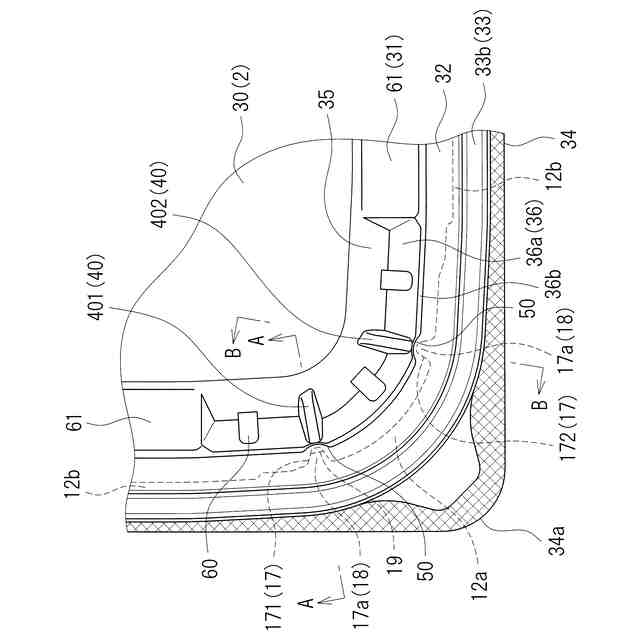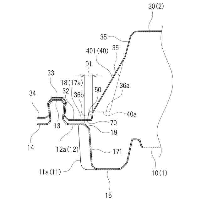 蓋突っ張りリブの下端部は、段差上面部に位置しており、