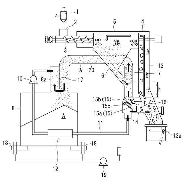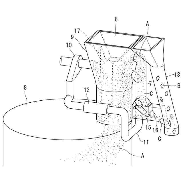 そのため、特に、廃棄物溶融炉からの熱分解ガスに随伴する可燃性ダストについては除塵器で確実に捕集し、羽口から廃棄物溶融炉に戻される必要があり、そのためには除塵器で捕集した可燃性ダストに含まれる異物としての金属線を分離する必要がある。また、除塵器で捕集したダストに含まれる異物としての金属線を分離する必要性(ニーズ)は、廃棄物溶融炉からの熱分解ガスに随伴する可燃性ダストに限らず、機械式篩のみでは分離できない金属線を含むダストを篩分けする技術としては他分野でも広範囲なニーズがあり、応用性が高い。