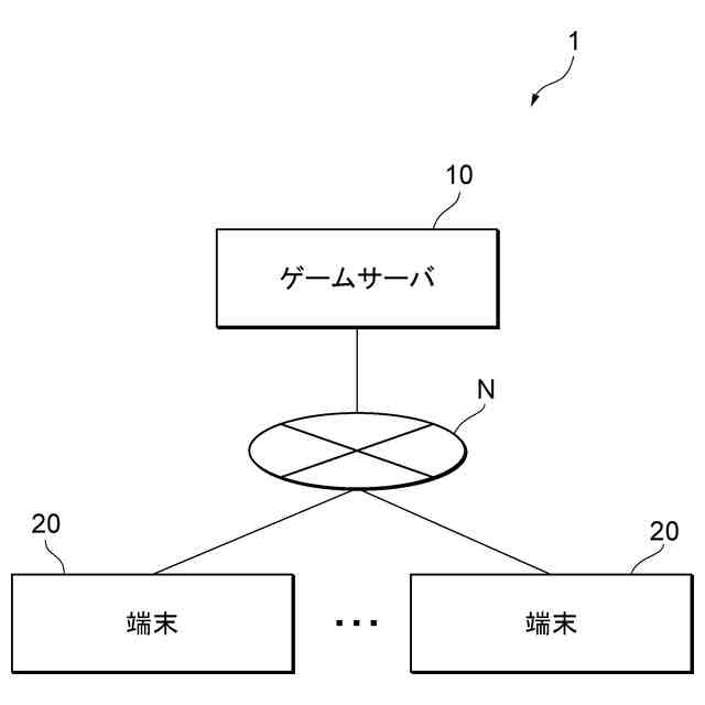 図1は、本実施形態に係るゲームシステム1のシステム構成の一例を示す図である。図1に示すゲームシステム1は、ゲームサーバ10(ゲーム装置)と、複数の端末20とを備える。ゲームサーバ10及び端末20は、インターネット、イントラネット、無線LAN又は移動通信等の通信ネットワークNを介して互いに通信可能に接続されている。