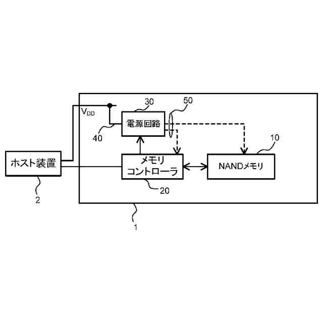 ホスト装置と接続可能なメモリシステムがある。メモリシステムは、ホスト装置又は外部装置から電源電圧が供給される電源装置を備える。電源装置は、供給された電源電圧に基づいて、電源電圧とは異なる値の電圧を生成する。電源装置は、生成した電圧を、メモリシステムが備える他のデバイスに出力電圧として供給する。メモリシステムにおいて、一般に電源装置の出力電圧の値は相対的に低く、かつ出力電流が相対的に大きい。出力電圧の値が低いことから、許容される出力電圧の値の変動範囲が比較的狭くなる。そこで、メモリシステムが備える電源装置は、DC/DCコンバータを用いることで、出力電圧の値を、許容される変動範囲内に制御している。