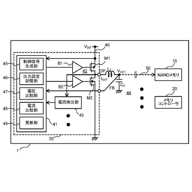 例えばSSDなどのメモリシステムでは、コストや実装面積を削減するため、PMIC(Power Management IC;電源管理IC)が用いられることがある。PMICは、それぞれが異なる電圧値の複数の出力電圧を生成することができる。PMICのそれぞれの出力電圧の値は、その出力端子において所定の電圧となるように設計される。電源供給先たる部品が、PMICから遠い位置に配置される場合、その部品に供給される電圧の値は、PMICの出力端子における出力電圧の値とは異なる(低くなる)可能性がある。このため電源供給先が、所望の電圧値が供給されない可能性がある。