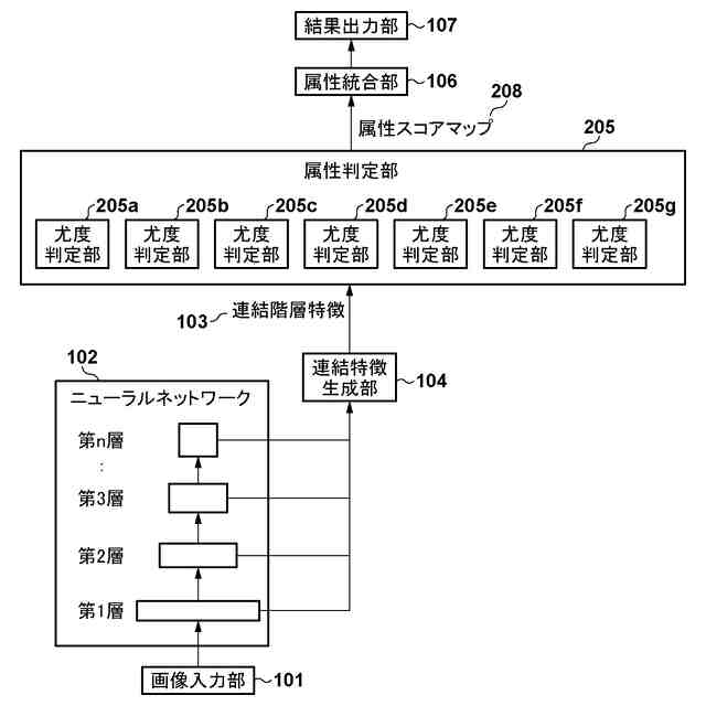 【解決手段】 入力画像を階層型ニューラルネットワークを用いて処理して得られる該階層型ニューラルネットワークの複数の層の出力を連結して連結階層特徴を生成する。連結階層特徴を用いて入力画像の領域の属性を表す属性スコアマップを、属性ごとに生成する。生成した属性ごとの属性スコアマップを統合して認識対象についての認識結果を生成して出力する。