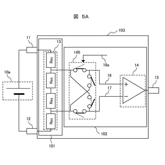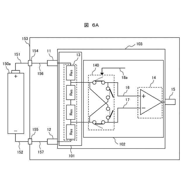 【解決手段】モニタ対象となる電圧の一方の電位に接続される第1の入力端子と、前記モニタ対象となる電圧の他方の電位に接続される第2の入力端子と、前記第1の入力端子および前記第2の入力端子間の電圧を分圧する分圧抵抗と、前記分圧抵抗に接続される極性切替え部と、前記極性切替え部に接続されるアンプ回路と、を備え、前記極性切替え部は、極性設定情報に基づいて、前記分圧抵抗と前記アンプ回路との間に設けられた前記分圧抵抗から前記アンプ回路への第1パスおよび第2パスの極性を切り替えることを特徴とする。