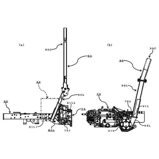 (a)本発明における実施の形態の農業用トラクターの前側ロプス部材近傍の左側面図、(b)本発明における実施の形態の農業用トラクターの後側ロプス部材近傍の左側面図