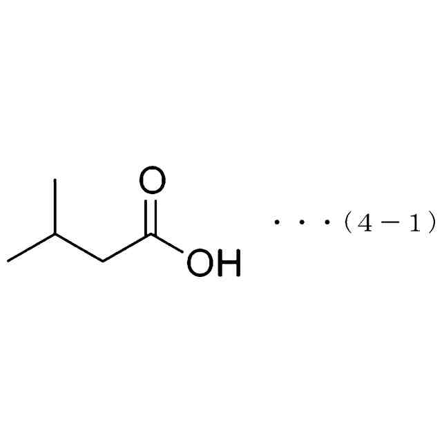 [8]前記式(4)で表される化合物は、3-メチルブタン酸を含む、[4]~[7]のいずれかに記載の抗菌性組成物。