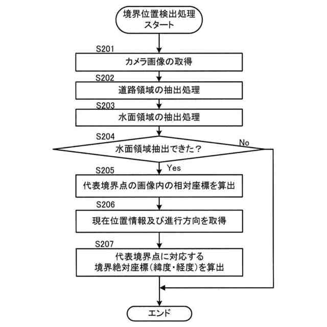 撮像装置又はセンサの出力結果に基づき、道路上において冠水又は積雪している第1範囲と当該第1範囲と異なる第2範囲との境界位置を検出する検出手段と、