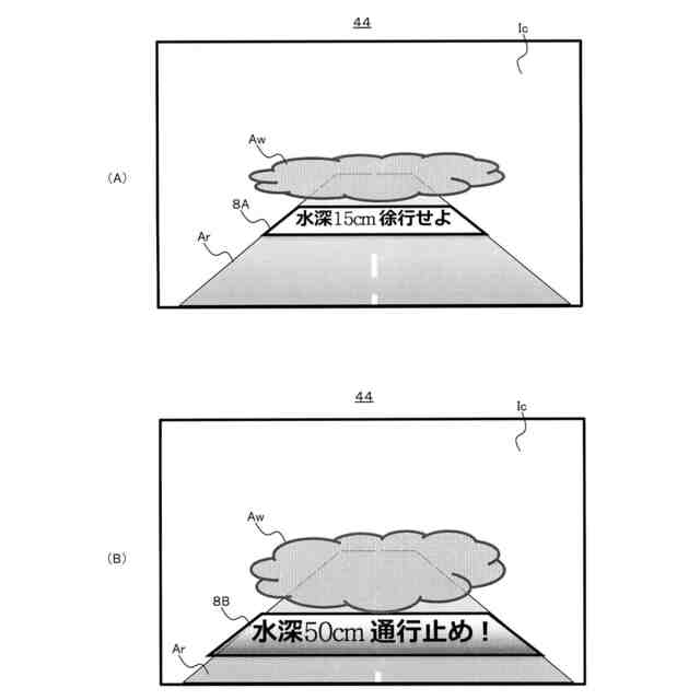 冠水部を検出した場合のディスプレイの第2表示例を示す。