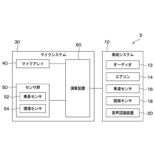 前記マイクシステムは、車両(5)の乗員位置、乗員人数および前記車両のサイドウィンドウの開度に基づく値である伝達関数(G)を算出する算出部(S208)をさらに備え、