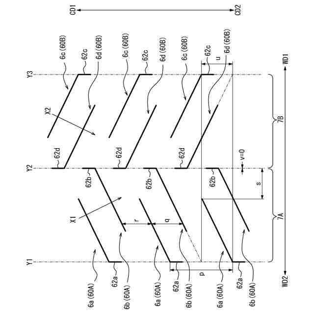 前記第1サイプユニットにおいて、前記一方の第1サイプ及び前記他方の第1サイプは、それぞれ、前記短辺の延在方向に沿う長さに対する、前記長辺の延在方向に沿う長さの比が、1~15であり、