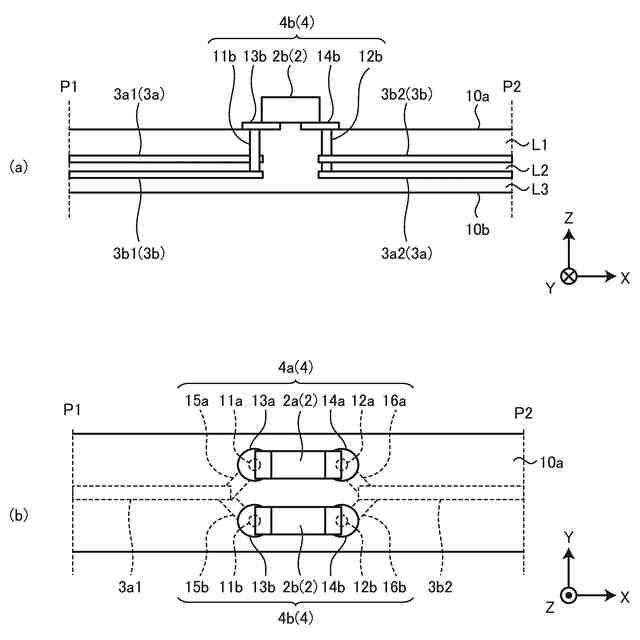 なお、特許文献3には、回路基板の内層に形成された差動信号対を接続する一端を回路基板の表面に形成された外部導体に接続するとともに、他端を回路基板の裏面に形成された外部導体に接続することにより、差動信号対間のスキューを抑制するものが記載されている。しかし、差動信号対の一端を接続する外部導体が表面に形成され、他端を接続する外部導体が裏面に形成されると、例えば、裏面への放熱部品や電源部品などの実装が制限され、裏面を有効活用することができない。
