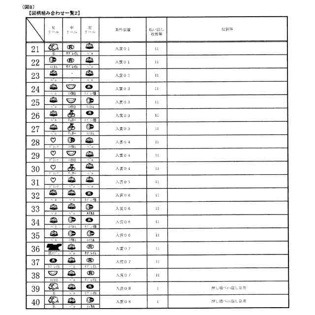 図8は、第1実施形態に係る回胴式遊技機における、図柄組み合わせ一覧2である。