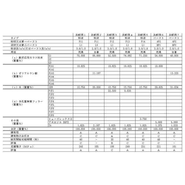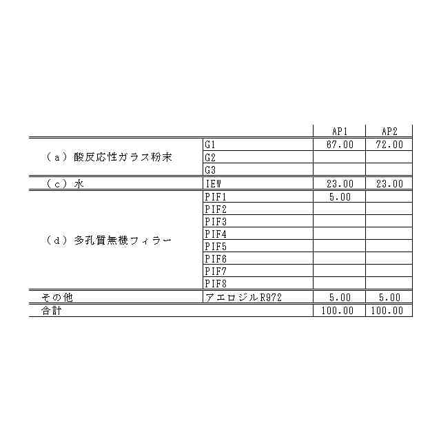 また、歯科用グラスアイオノマーセメントは、練和直後から前記酸-塩基反応により硬化が進行するため、如何なる練和物性状であっても一定時間が経過すると練和物の糸引きが低減し、賦形操作がしやすくなる。そのため、窩洞に填入した練和物に賦形を行う際は、練和物の糸引きが低減するまで待ってから賦形操作が行われる。一方、練和物の糸引きが著しく、さらに糸引きが低減するまでに時間を要する場合は、治療時間が長くなると共に、治療部位が唾液により汚染されるリスクが高まることとなる。