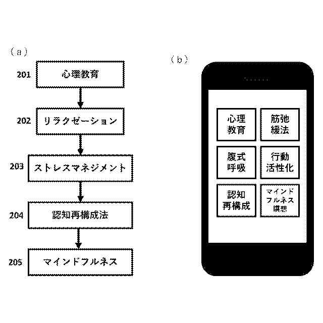 近年、スマートフォンなどの情報処理端末が進化し、ユーザの携帯するスマートフォンで多くの機能が実施されるようになってきた。また、典型的には継続的にユーザが利用することが求められるプログラム、特には心理療法を実施するための治療用のセルフケアカウンセリングモジュールなどが提供されるようになってきた。そして、継続的な利用が求められるプログラム等をユーザの情報処理端末に提供したのちに、ユーザが継続的にそのプログラムを情報処理端末を使って利用を続けるようにするための工夫が着目されている。