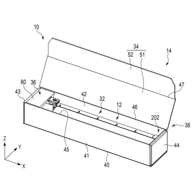図1から図3に示すように、トナーカートリッジ流通体10は、トナーカートリッジ12と、トナーカートリッジ梱包箱14とを有する。