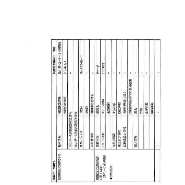 前記検証データは、前記券売機における定期券の発行処理、前記自動改札機への入退場、前記ICカードへの入金処理、前記ICカードを用いた物販の少なくとも1つを含む、