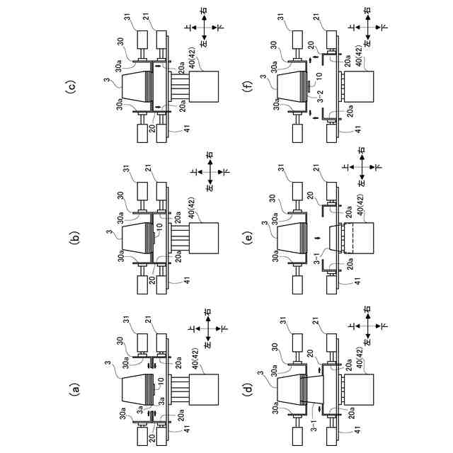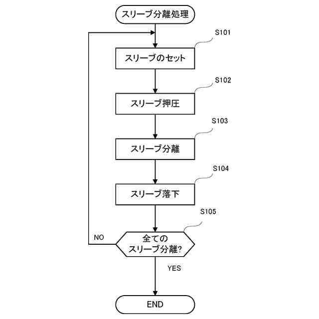 【解決手段】スリーブ分離装置100は、第1のスリーブ3-1の広径側の端部3aの外周を押圧する第1の押圧部20と、第1のスリーブ3-1に重ねられた第2のスリーブ3-2の広径側の端部3aの外周を押圧する第2の押圧部30と、を備える。第1の押圧部20により変形した第1のスリーブ3-1と、第2の押圧部30により変形した第2のスリーブ3-2が重ねられた状態で、第2のスリーブ3-2の広径側の端部3aでスリーブ3の軸方向と垂直な面で切断したとき、第1のスリーブ3-1の第1の切断形状と、第2のスリーブ3-2の第2の切断形状が、相似形となり、第1のスリーブ3-1と、第2のスリーブ3-2との間に隙間が形成され、第1のスリーブ3-1がスタックから分離される。