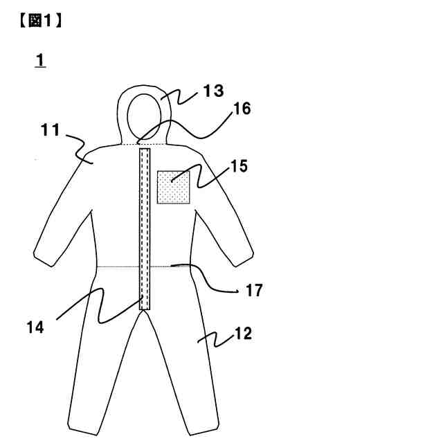 ここで、特許文献1には、作業者の衣服内環境情報や生体機能を探知する表示用センサーを収納するための取り付け部が防護服の内側に設置された防護服が開示されている。また、特許文献2には、胸部に装着した線量計等の装備品を、防護服が備える透明部を介して防護服の外部から視認できる防護服が提供されている。