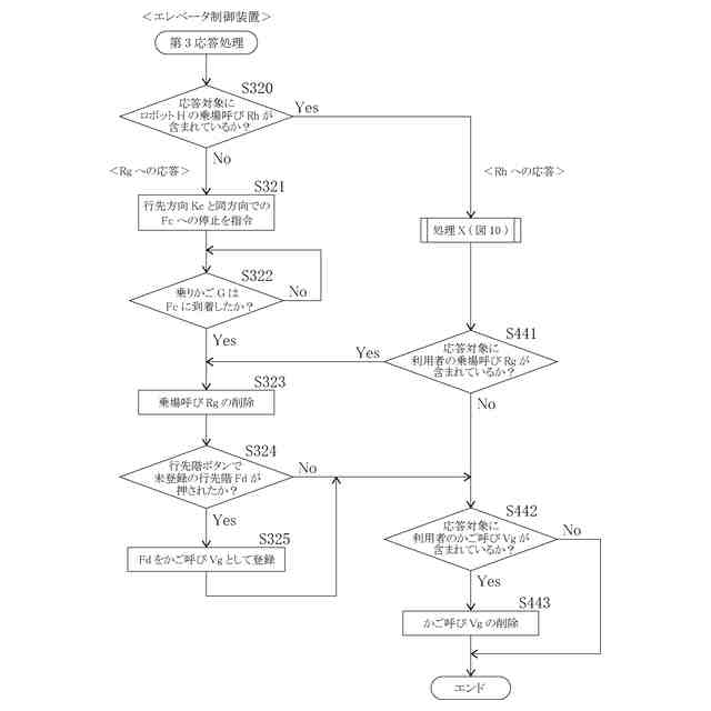 (3)前記ロボットの乗車階と当該ロボットの目的階との間に前記利用者の出発階があるという条件と、