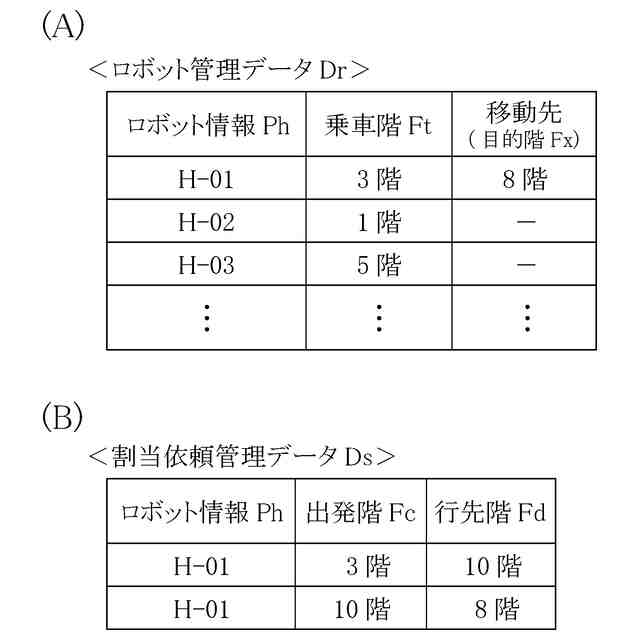 【解決手段】ロボット管理装置は、乗りかごが停止階に到着したときに、その乗りかごの到着階が、割当依頼で送信した出発階の何れかに一致するか否かの判断を行い、その判断にて出発階の何れかに一致すると判断した場合、一致した割当依頼を第1着目依頼として、その第1着目依頼で送信した出発階及び行先階を用いて、その出発階から行先階へ向かう方向をロボットの搬送方向とした上で、上記到着階からの乗りかごの出発方向が、その搬送方向に一致するか否かの判断を行う。更に、ロボット管理装置は、その判断にてロボットの搬送方向に一致すると判断した場合、第1着目依頼で送信した出発階がロボットの乗車階に一致するか否かの判断を行う。