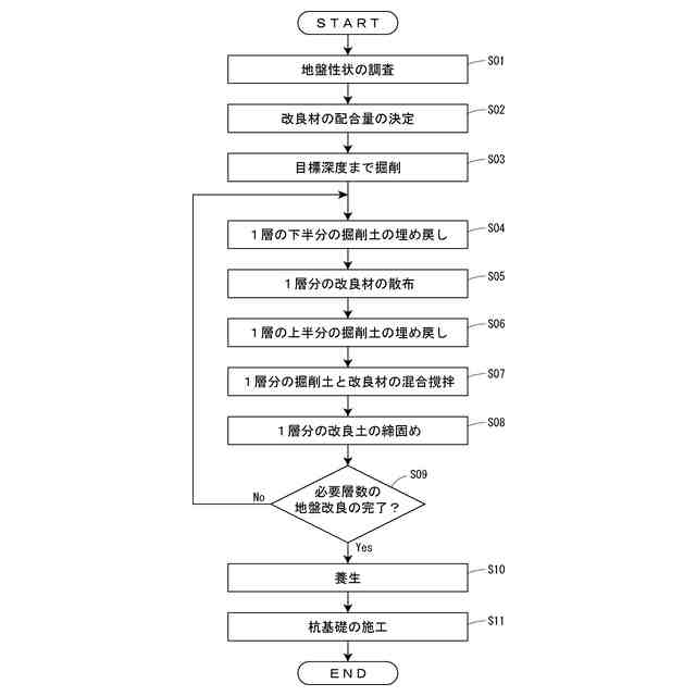]が添加されて一様に地盤改良される。このため、軟らかい地盤であった場所では一軸圧縮強度が750[kN/m
