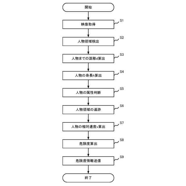 前記人物までの距離および前記人物の速度に基づいて、前記移動体が前記人物に衝突するまでの予測時間を算出するステップとをさらに含み、