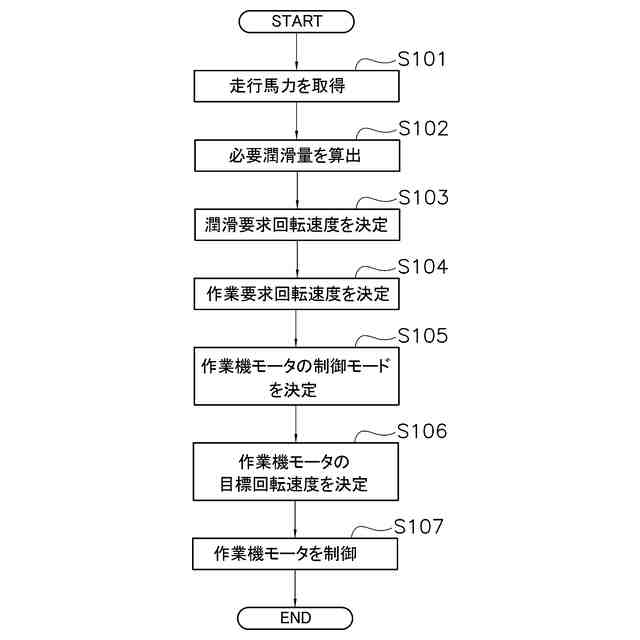 前記潤滑ポンプの容量と前記必要潤滑量とに基づいて、前記作業機モータの目標回転速度を決定する、
