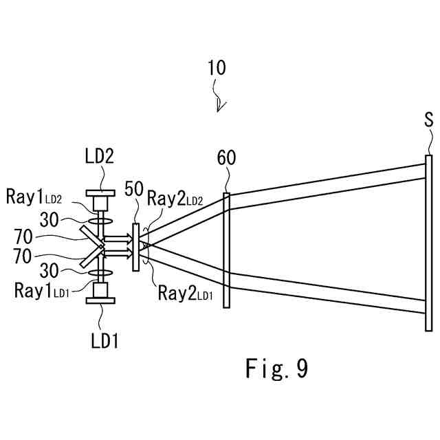 このような構成により、合波するための追加部材を用いることなく、簡易な構成で合波してより明るい像を作成することができる。